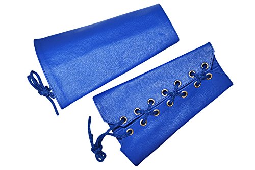 -. Title : Blue Double Leather Laces Wristband Arm Band Hand Gauntlet Cuff Black New Pair