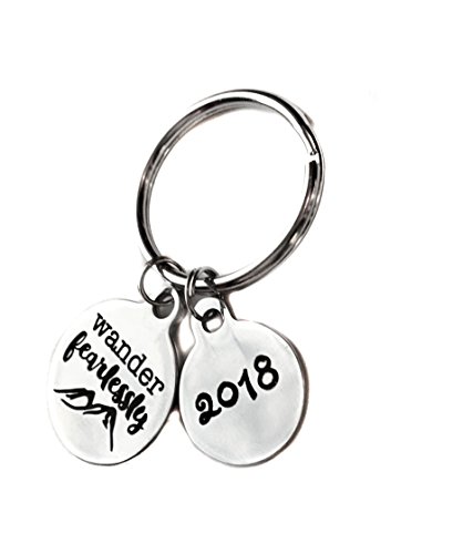 Product Description Made with a stainless steel 3/4" x 7/8" or 19mm x 22mm "Wander fearlessly" circle charm and key ring with a round stainless steel "2018" charm. Makes a great graduation gift! 0