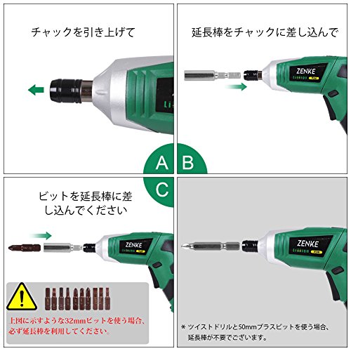 2, 付属した32mm S2 ビットをご使用になる場合、必ず付属した延長棒をご利用ください。