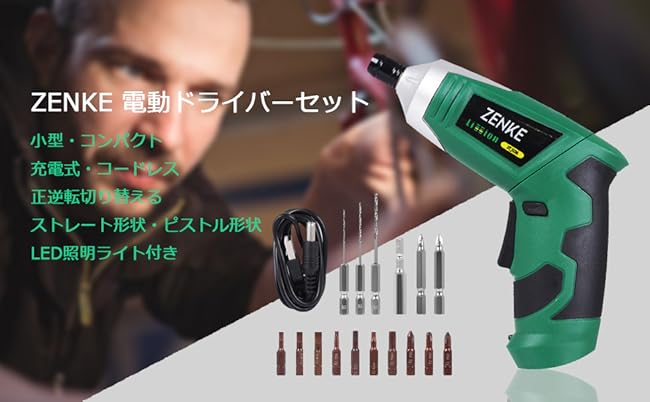 暗くてネジの穴を見にくい所の作業に役立つLEDライト付き、利便性が大幅にアップします。