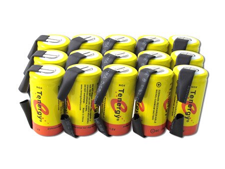 Combo: 15 pcs Tenergy Sub C 2200mAh NiCd Rechargeable Battery for Power Tools (w/ Tabs)