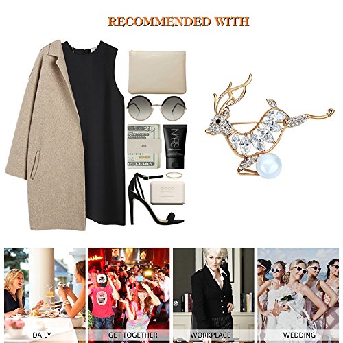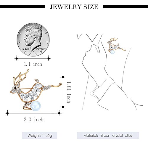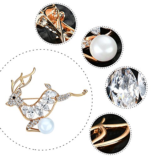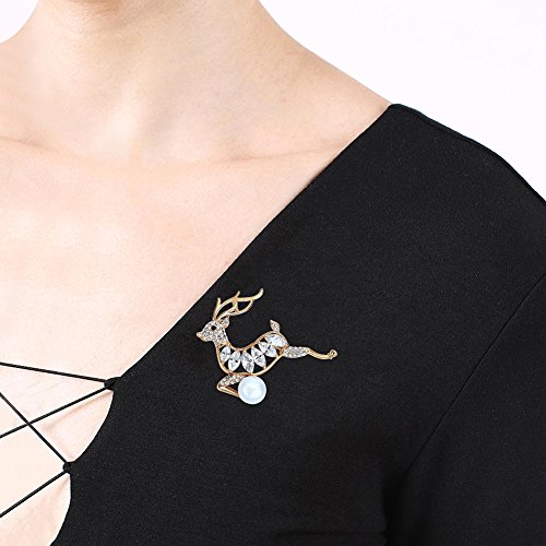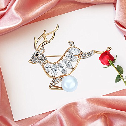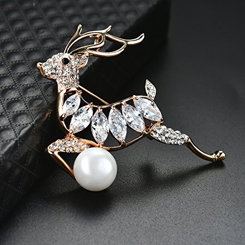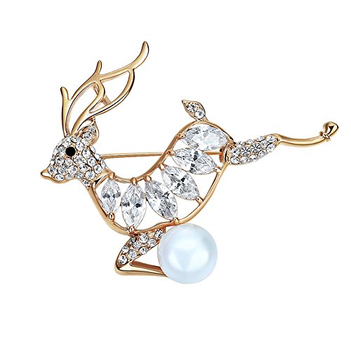 Cute Animal Gold Plated Fashion Christmas Reindeer Austrian Crystal Brooch Pin with Pearl for Women Clothing Accessaries
