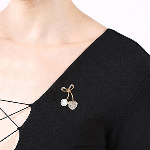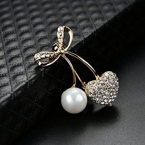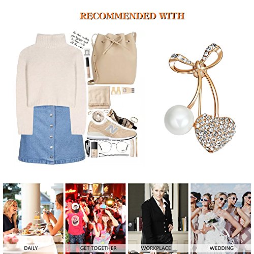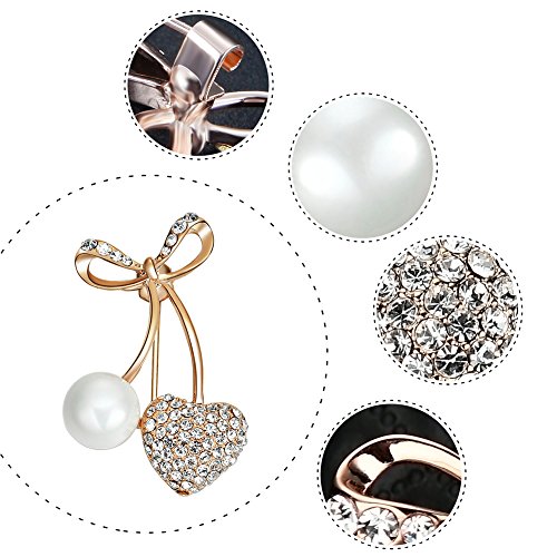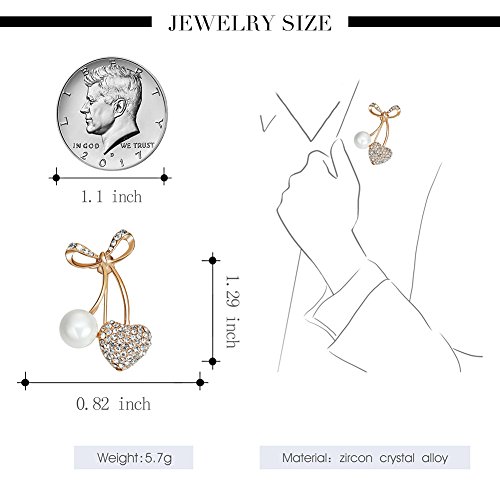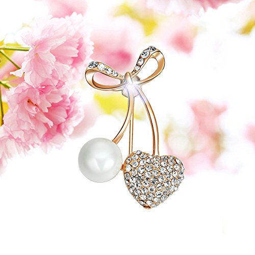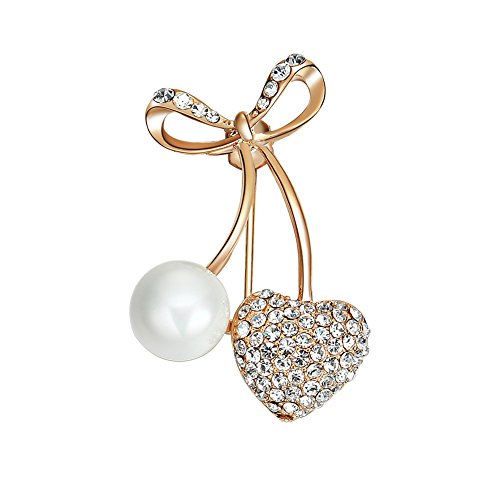 Fashion Faux Pearl Classic Heart Shape Crystal Rhinestone Ribbon Bowknot Brooch Pins Jewelry for Women