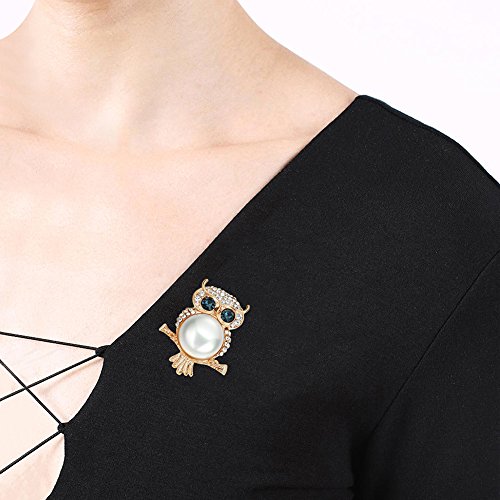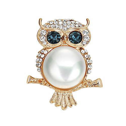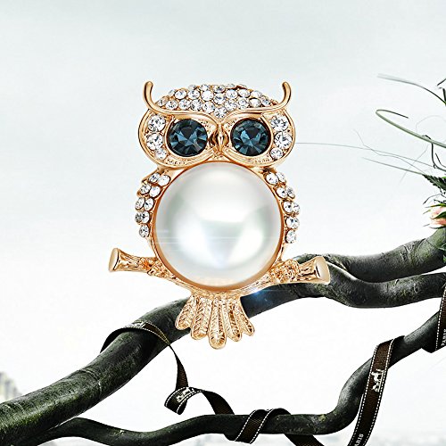 Women Vintage Owl On the Branch Design Crystal Rhinestone Faux Pearl Brooch Pin Jewelry Christmas Gift