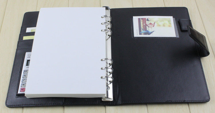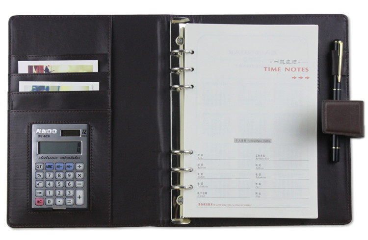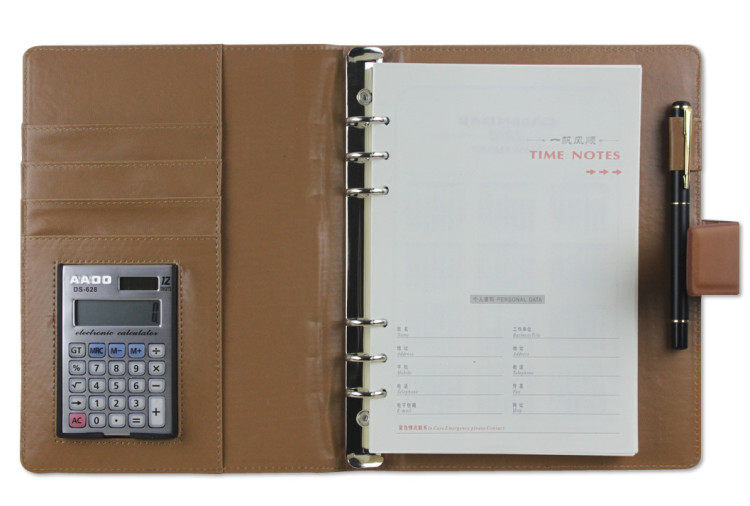 ?多功能带计算器6孔记事本A5本 ?材质:变色pu