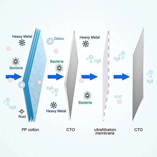 WORKING PRINCIPLE--Organic Carbon Block Triple Filtration Technology that brings Cleaner, Clearer, Better Tasting Drinking Water by Reducing Lead, Iron, Mercury, and Other contaminants.