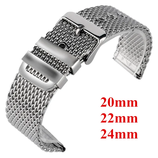 | [해외] 클래식 20 미리메터 22 미리메터 24 미리메터 스테인레스 스틸 메쉬 팔찌 실버 남성 여성 핀 버클 교체 시계 스트랩 |