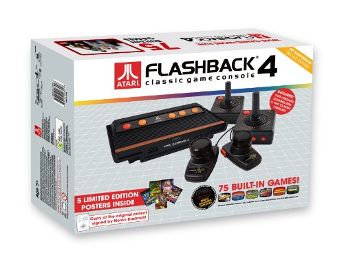 -. Feature : Atari Flashback 4 classic game console / 75 Built-in games that defined a generation / Two Atari Flashback 2600 wireless controllers / Two Classic Paddles / Plug & play on any TV, Powered by AC adapter