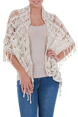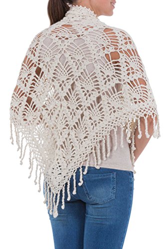About this item: Andean blossoms cover this elegant shawl by Maria Esperanza Jauregui. Crocheted by hand, their lavish beauty evokes colonial lace. She works in luxurious alpaca wool, prized since Inca times for its lightweight warmth. 34.5" L x 60.0" W - Textile softness: Soft -- this item has been made with natural fibers that are soft to the touch