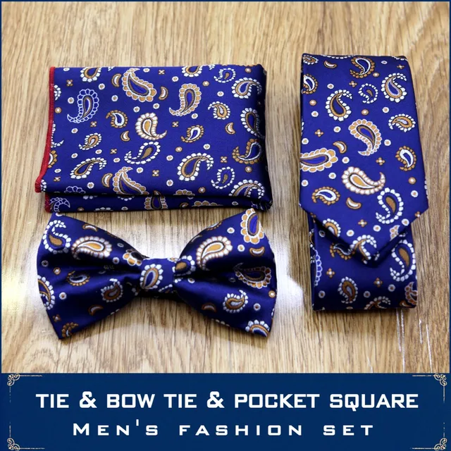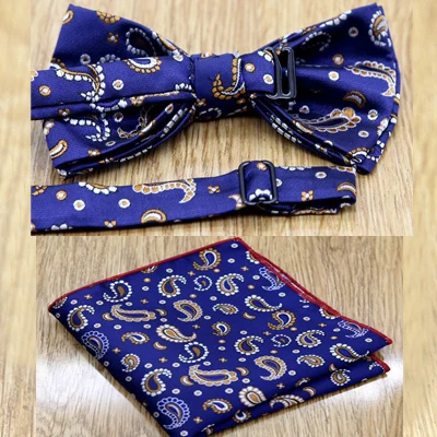 | [해외]남성 스키니 넥타이 세트 페이즐리 여러 가지 빛깔의 네이비 블루 포켓 광장 조절 사전 묶여 나비 넥타이 세트 실크 넥타이 무료 배송 |