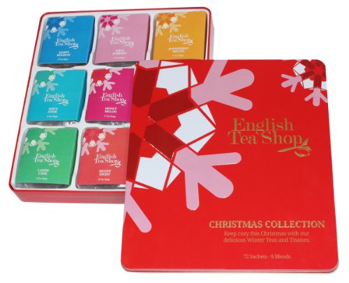 English Tea Shop Red Christmas Tray is a delicious collection of tea perfect for Christmas time, it contains 9 variations of tea and with 8 bags of each equal to 72 bags.