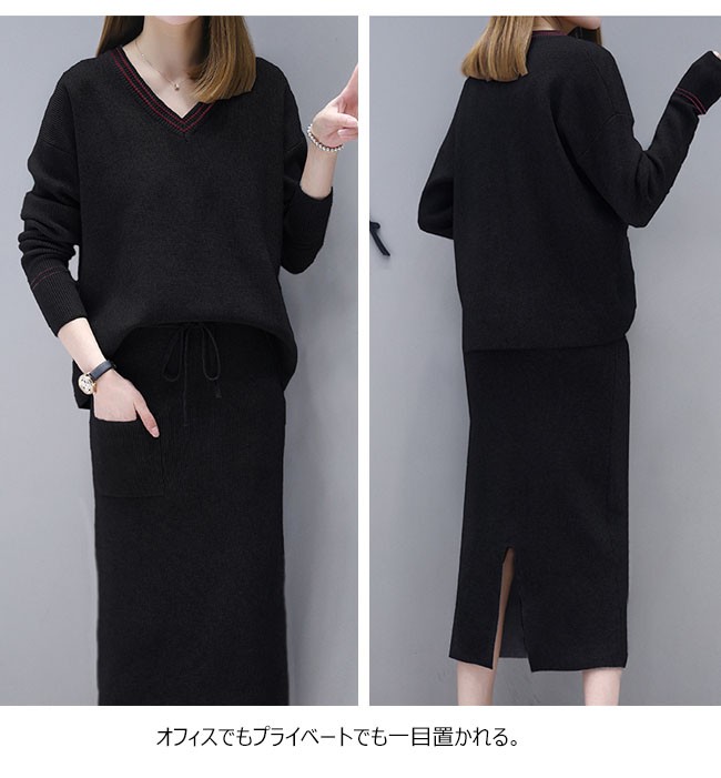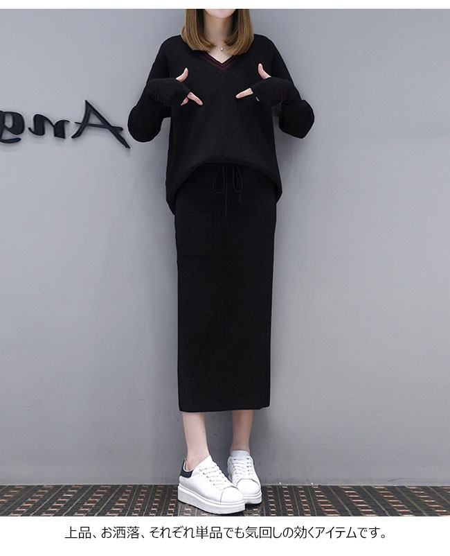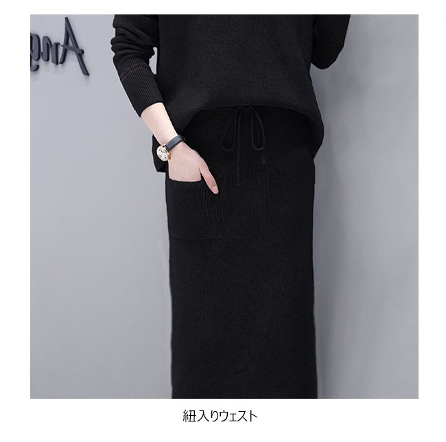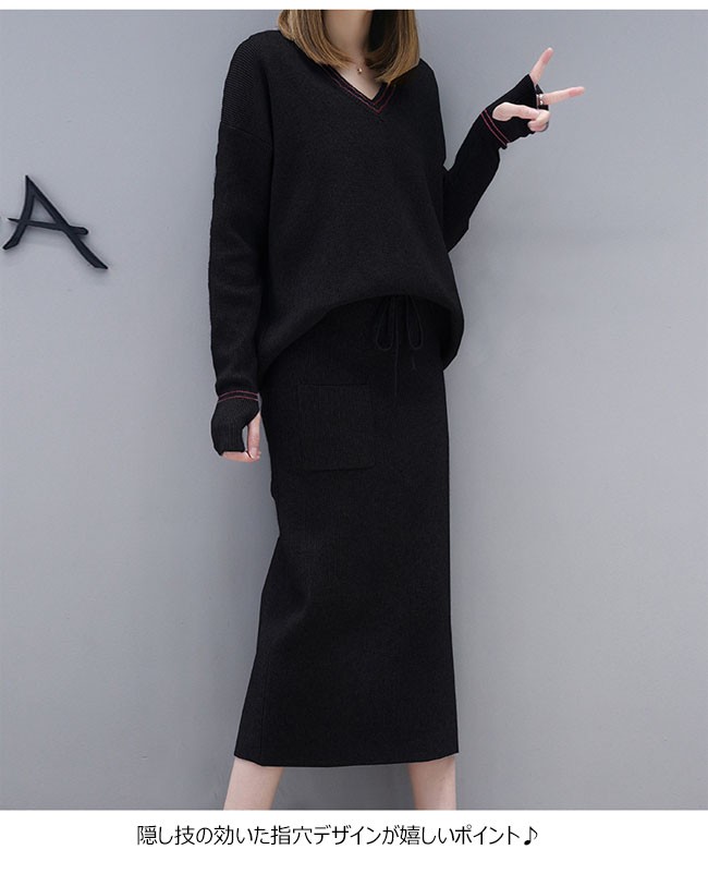 | 商品名 | 2点セット コーデセット ニット ニットセーター ロング丈スカート 大きいサイズ スリット ワンピース風 長袖 指穴 上下セット セットアップ 2017秋冬新作 |