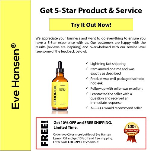 -. Feature : ✔ PREMIUM QUALITY FRESH LEMON OIL ★ Made in the USA ★ Safe for Ingestion ★ 100% Pure Cold Pressed Essential Oil (Citrus Limon) maintaining the full flavor and scent. Certified as unfiltered and undiluted with no fillers, no alcohol or other additives. If you are not fully satisfied, we will refund all of your money. / ✔ HIGH QUALITY GLASS DROPPER for your convenience. Helps you with dosage avoiding sudden dripping or leak. / ✔ NATURAL FRESHENER AND CLEANER. Great antiseptic cleanser with refreshing and cooling properties - makes the house smell wonderful and fresh. Also a few drops in a glass of water boosts your energy level, keeps you healthy, and tastes great. / ✔ CONSISTENT CUSTOMER SERVICE. We are extremely customer oriented brand. With the purchase You'll get free Tips on Using, Quick responses to any of your questions. If you simply don't like the product, you'll get one other for free. If your product gets lost on the way, we'll send you replacement. If something goes wrong, you'll get full refund. Your opinion values more than our short-term revenue.