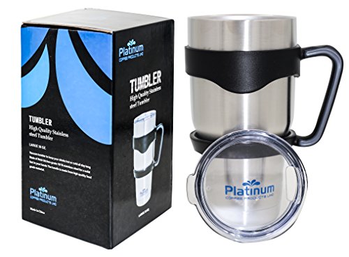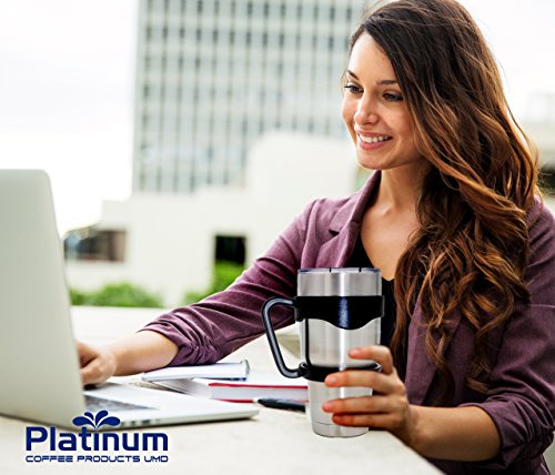 Premium Double Stainless Steel Tumbler with Handle Vacuum Double Wall Vacuum Sealed 30 oz / 887ML No Sweat Travel Mug Thermos BPA Free- Slim - Car Fit #1 Coffee Tumbler & Handle Platinum UMD