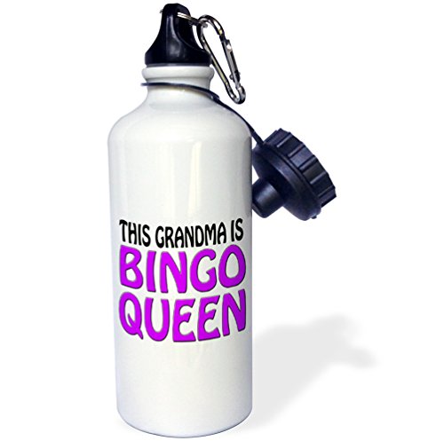 3dRose wb_149773_1 This Grandma Is Bingo Queen, Purple, Sports Water Bottle, 21 oz, White