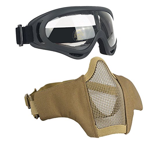 -. Title : Airsoft Masks - Adjustable Half Metal Steel Mesh Face Mask And UV400 Goggles Set For Hunting, Paintball, Shooting