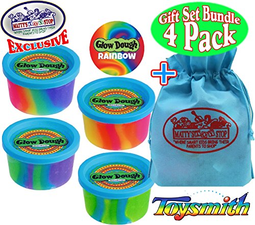 -. Title : Toysmith Glow Dough Rainbow (Slime/Putty) Complete Gift Set Party Bundle with Exclusive "Matty's Toy Stop" Storage Bag - 4 Pack