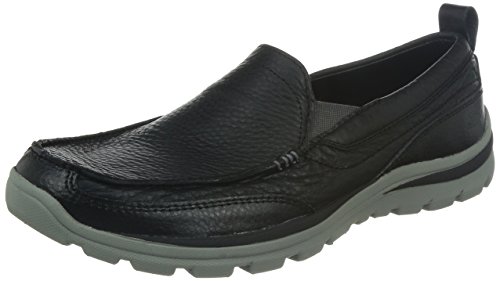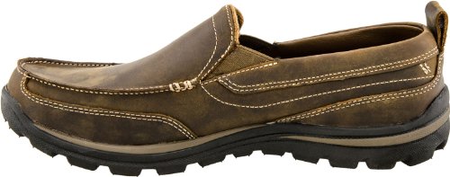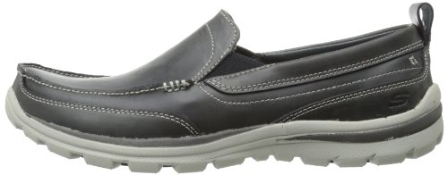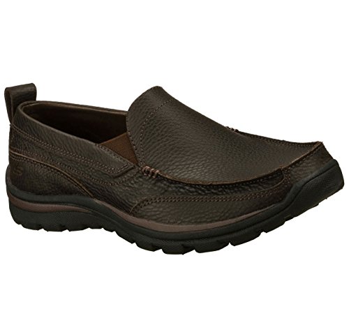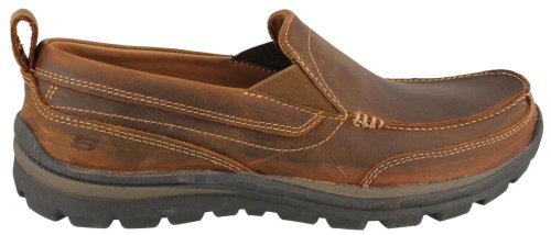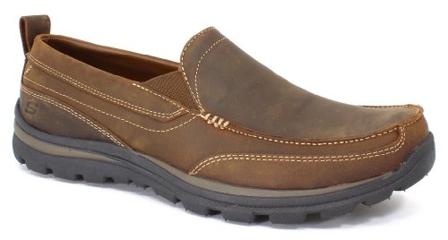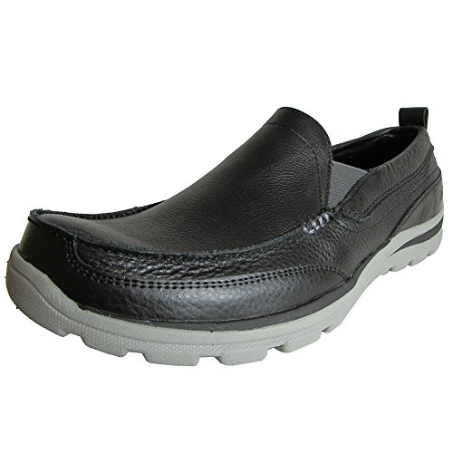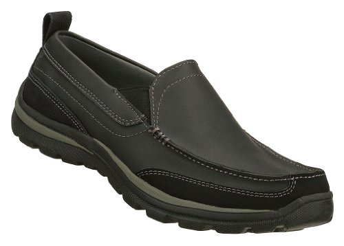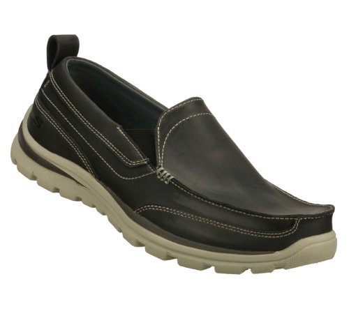Studio : Skechers USA Footwear Mens Publisher : Skechers USA Footwear Mens Binding : Apparel Product Description The Skechers Relaxed Fit Gains 63697 men's casual is a comfortable footwear. This men's casual has a leather upper with stitching accents and a moc design toe. Elastic fabric panels have been provided on both sides to enable easy wear/removal. Synthetic and fabric lining are present to ensure interior comfort. Removable comfort insole with memory foam covering is there to provide support while shock absorption is done by the midsole. A flexible traction outsole is present to provide stability. Men would love the different stitching accents found on the Skechers Relaxed Fit Gains 63697 men's casual. 0