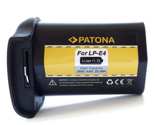 1x PATONA LP-E4 Lithium-Ionen Akku mit Uberladungs-/Uberspannungsschutz, Kapazitat: 2600mAh, mit Transportschutz (Kontaktschutz)
