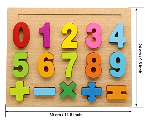 Studio : Motrent Publisher : Motrent Product Description Wooden Number Puzzle This puzzle includes 10 pieces of numbers and 5 mathematical symbols puzzles Encourages the development of fine motor skills, basic spelling, and letter recognition. Develops children's logic, mathematical, and spatial reasoning abilities. Size of board is 7.9" x 7.9" x 0.2" Each Block is approximately 1.6" x 1.6" in size, and 0.5" thick Weight: 450 g / 1 pounds WARNING: CHOKING HAZARD -- Small parts. Not for children under 3 yrs. 0