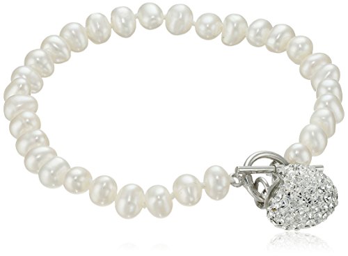 Jewelry set with cultured pearl necklace and bracelet each featuring toggle closure and heart-shaped sparkling charm