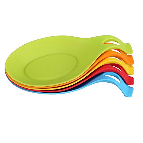 -. Feature : Made of 100% food grade silicone, non-toxic, BPA free, durable, strong,flexible and dishwasher safe. / Use for kitchen utensils or gadget, to lay down your spoon, brush, utensils and so on, to keep your stove top, table top, counter clean and Solid silicone surface means no crevices for bacteria to collect / Come with large size of 9.1 x 4.7 x 0.6 inches, big enough to put your kitchen utensil or other gadget on it,heat-resistant material to -40℃-200 / Four 9.1 x 4.7 x 0.6 inches spoon rests - red, blue, green, orange,yellow / Lifetime, no-hassle free-replacement guarantee