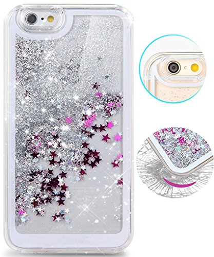 iPhone 6 Case, iPhone 6S Case, Hundromi Luxury Bling Glitter Sparkle Hybrid Bumper Case with Liquid Infused with Glitter and Stars For Iphone 6/Iphone 6S - Purple