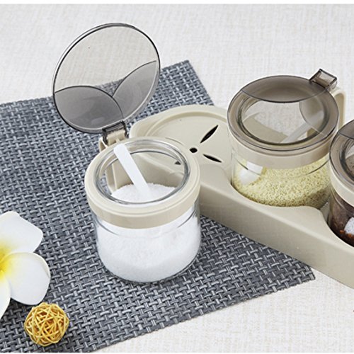 Studio : TENTA7 Publisher : TENTA7 Binding : Kitchen Product Description Tenta Kitchen Airtight Glass Seasoning Box Set - 4 Serving Spoons - Non Slip Base - Luxurious Condiment Cruet Bottle Spice Jar Set - 11oz Each Product Details --- Spice jar --- size - 9x9x7.5CM/3.546x3.546x2.955INCH Capacity - 320ML/11Oz weight - 227g --- Base --- size - 39.6x11.2x1.5CM/15.6x4.409x0.59INCH weight - 108.4g --- Spoon --- length - 9.5CM/3.74INCH --- Total --- size - 39.6x11.2x8.7CM/15.6x4.409x3.425INCH net weight - 1016.4g gross weight - 1198g Material - Glass; PP Plastic Product Features E-friendly, healthy and quality material which can be used safely and kept for many years to come. Humanized design - one-press-open cap - good grip handle avoiding slipping from wet hands! Airtight design - cap can close completely and protect from the pest, dust, water and more - Spoon is short enough to sit inside and long enough to take condiment. Elegant and clear glass, basic color will match all kind of kitchen theme! If any problem on our product and service, please contact us and we'll take care of you, 0