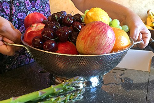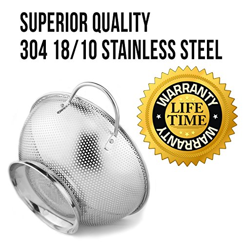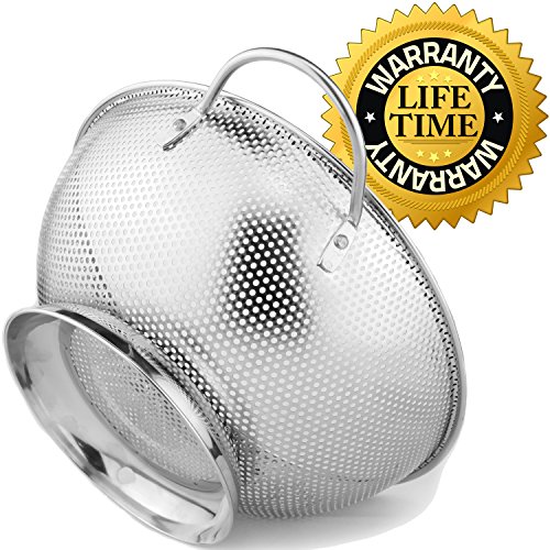 Colander Pro Stainless Steel 5-Quart Colander: Metal Pasta Strainer with Handles & Base - Large Strainer Basket for Pasta, Rice Noodles & More: Dishwasher Safe