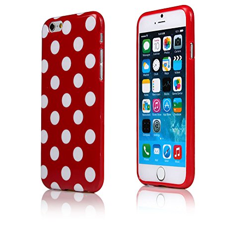 iPhone 6 Case, Boriyuan Stylish Polka Dots Apple iPhone 6 (4.7" inch) Flexible Soft Rubber Silicone Case Cover , Brand New Ultra Thin Snap On Back Protective Skin [with a Free Screen Protector] (White+Red)