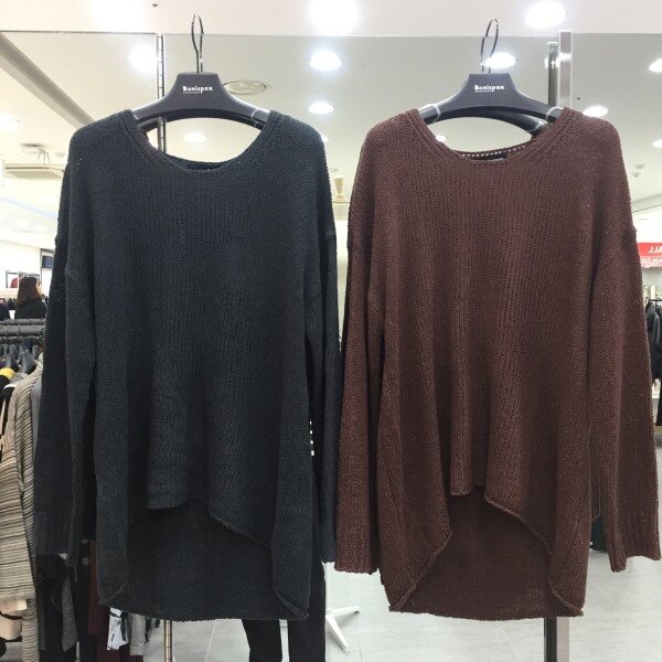 언발란스 기장에 딱 떨어지는 기본 핏으로색감이 정말 예쁜 라운드 니트 입니다.