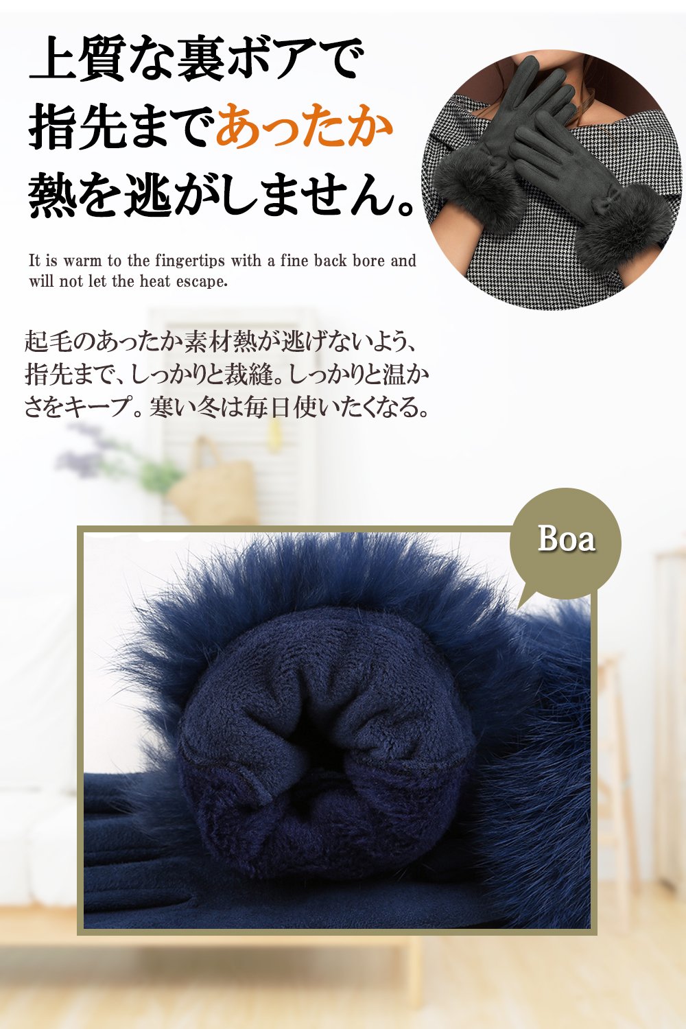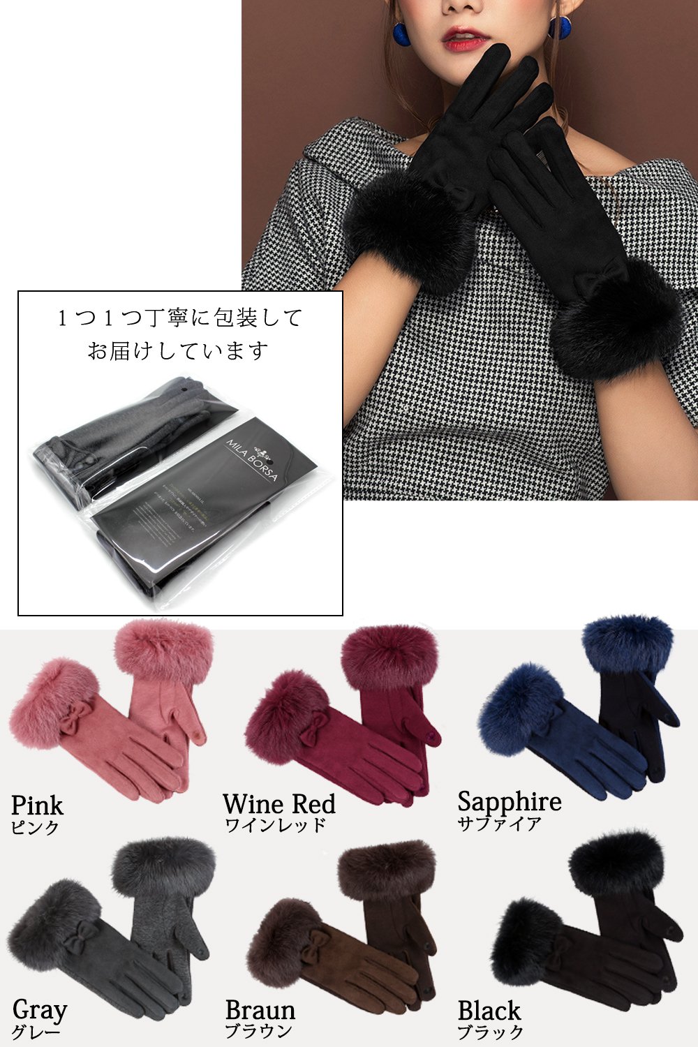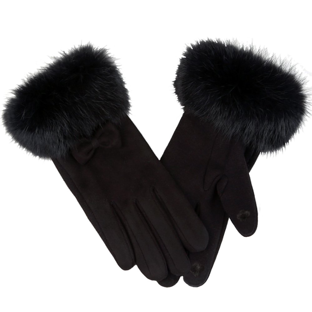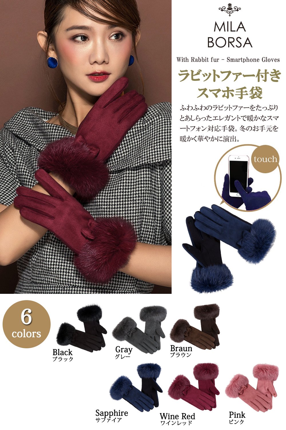 Elegant and warm smartphone compatible gloves with plenty of fluffy rabbit fur.