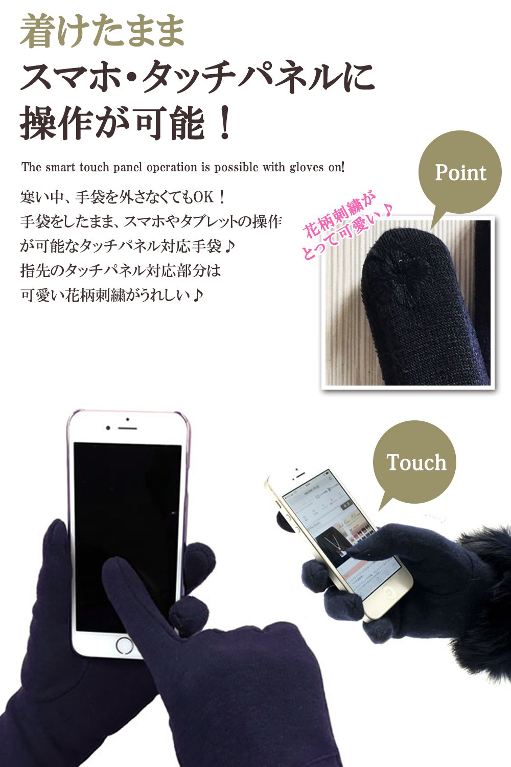 The part corresponding to the touch panel of the fingertip is happy ♪ cute flower pattern embroidery