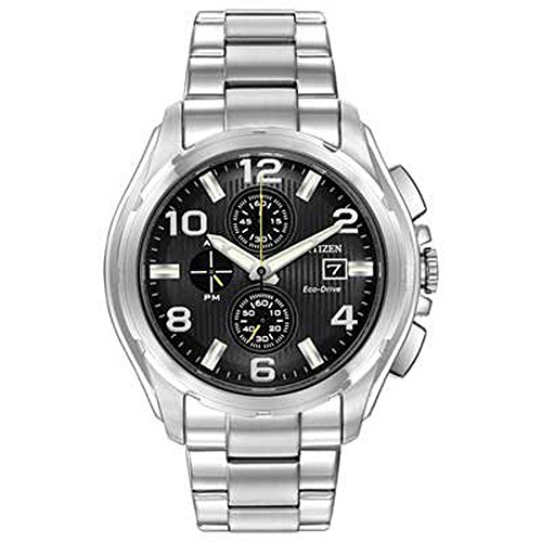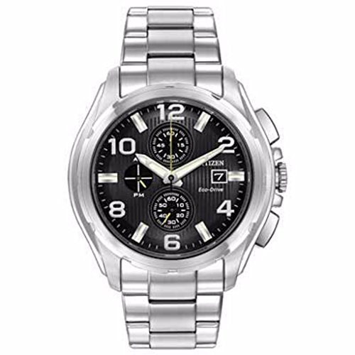 -. Title : Men's Citizen Eco-Drive Chronograph Stainless Steel with Black Dial Watch CA0271-56E