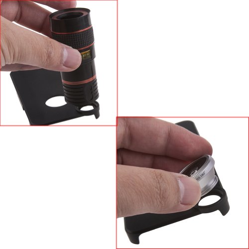 -. Title : TETC Camera Lens Kit including a 8x Telephoto Lens / Fisheye Lens / 2 in 1 Macro Lens and Wide Angle Lens / Mini Tripod / Universal Phone Holder / Hard Case / Velvet Phone Bag / TETC Microfiber Cleaning Cloth for iPhone 4 4S (black)