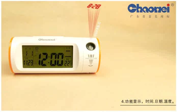 2 . Voice with projection screen projection screen turns off lights while the projection lamp disappears can be rotated 60 degrees to adjust the focus ? time and date display function? national languages ??( you can display the date ? 8 -lingual display export hey .. ) ? alarm clock and snooze function ( the alarm can be set to two daily ) ? digital thermometer