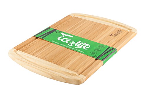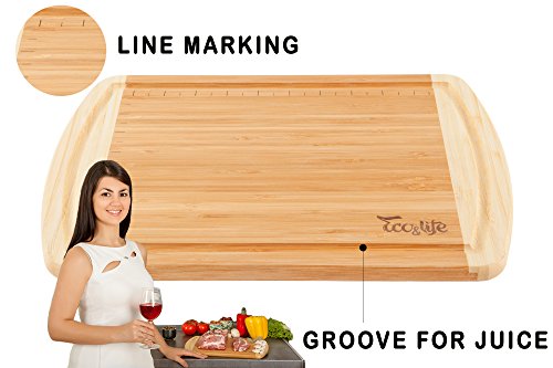 Eco&Life Bamboo Cutting Board with Groove - Professional Grade Cutting Board Features Engraved Measurements For Meat and Veggie Prep Fine Cuts - Perfect Size, Thick, Eco-Friendly (Extra large)