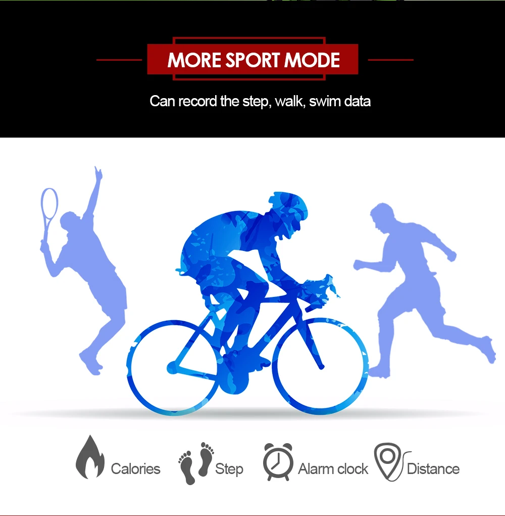 Function:Passometer,Sleep Tracker,Push Message,Heart Rate Tracker,Alarm Clock,Remote Control,Speed Measurement,Fitness Tracker,Message Reminder,Call Reminder