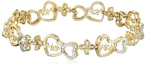 -. Title : 18k Yellow Gold over Sterling Silver Diamond Mom in Heart Bracelet (1/10cttw, I-J Color, I2-I3 Clarity), 7.25"