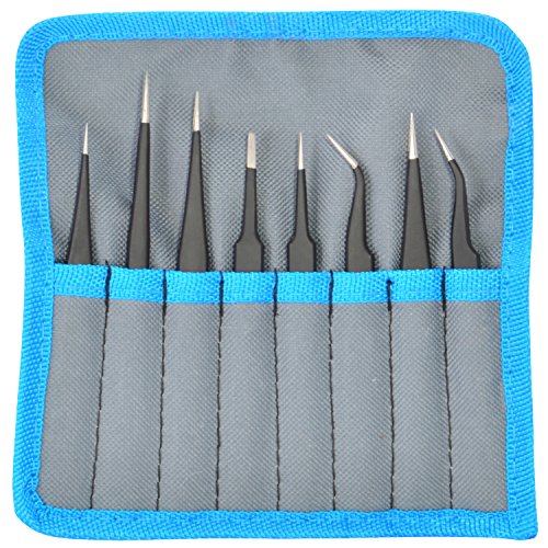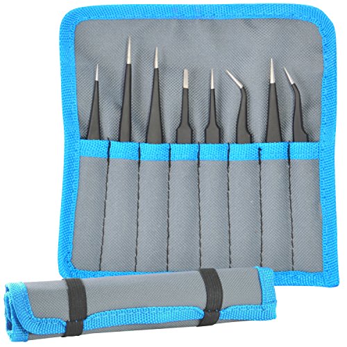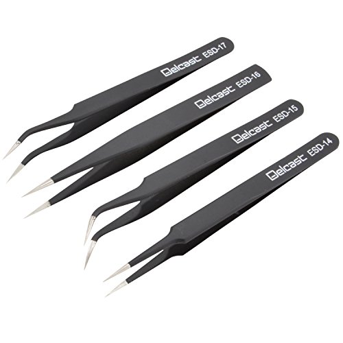 Delcast TZ-8X ESD Safe Anti-Static Stainless Steel Tweezers Set for Electronics, Jewelry, Crafts, 8 Piece