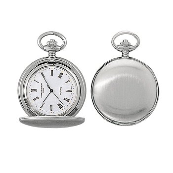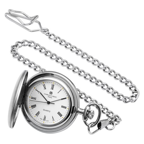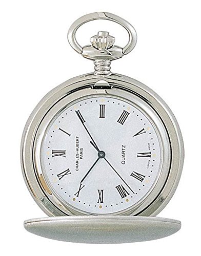 Amazon.com Product Description With its understated, old-world elegance, the Charles-Hubert, Paris Satin Finish Quartz Pocket Watch #3611 is a timepiece that combines the precision of quartz movement with a sleek, silver-tone design and engravable case. Made of chrome satin finish brass for lasting beauty, this pocket watch has a matching chain and crisp white dial with black-tone Roman numeral hour markers and date display at three o'clock. Perfect for gift-giving, this Charles-Hubert original arrives in a deluxe blue giftbox with belt clip and warranty card.