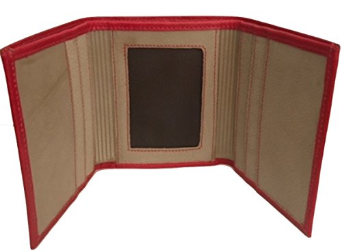 Binding : Apparel Product Description Trifold Wallet--50408RDWH Glove Soft Leather Color Red with Light Grey Interior Size 4.5 X 3.5 when closed Size 8.5 X 3.5 when open INSIDE FEATURES: 4 Card Slots: 3 on right side, 1 on flap 2 slots below the left and right hand sides Removable ID Section with 2 mesh ID pockets Divided bill section 0