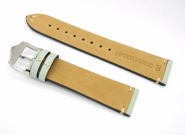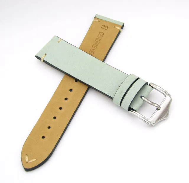 | [해외] 20 22 미리메터 남성 여성 정품 스웨이드 가죽 빛 녹색 아쿠아 민트 특별한 시계 밴드 스트랩 벨트 실버 폴란드어 핀 버클 최고의 선물 |