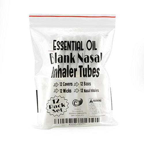 Essential Oil Aromatherapy Blank Nasal Inhaler Tubes (12 Complete Sticks), Empty White Nasal Inhalers w/ Wicks for Essential Oil, Treat Common Breathing Problems Naturally, Refillable