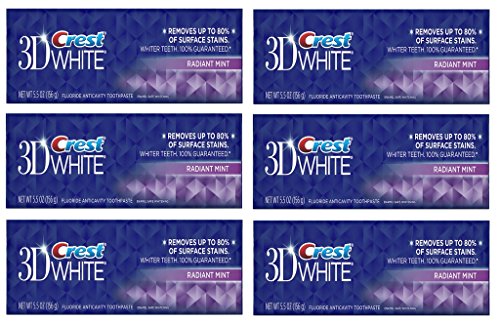 -. Title : (PACK OF 6 TUBES) Crest 3D White Anti-Cavity Teeth Whitening Toothpaste. Removes Up to 90% of Surface Stains! Vibrant & Refreshing Mint Flavor! (6 Tubes, 5.5oz each Tube)