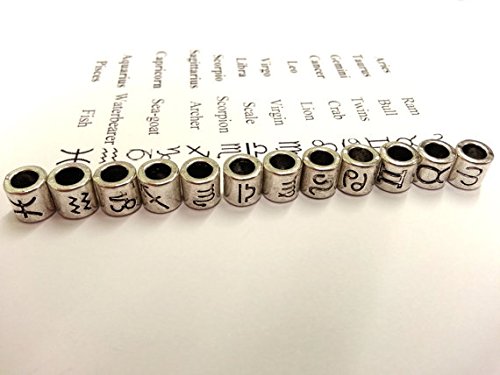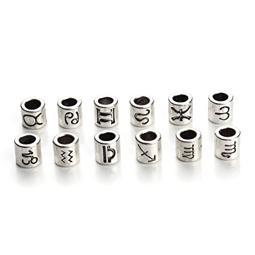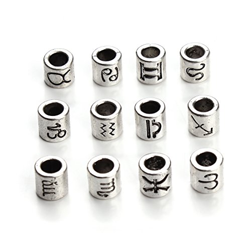 Linsoir Beads Antique Silver Tone Zodiac Beads Charm 4mm Hole Horoscope Beads Fit European Bracelet Pack of 60 Pcs