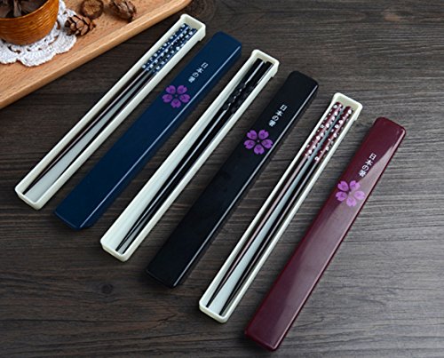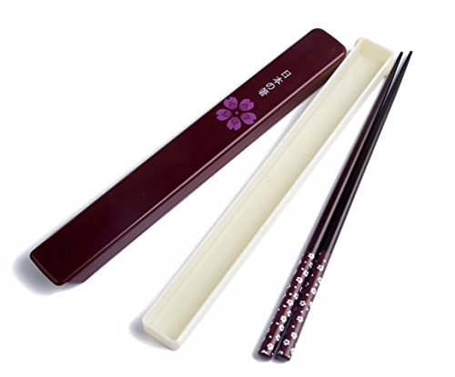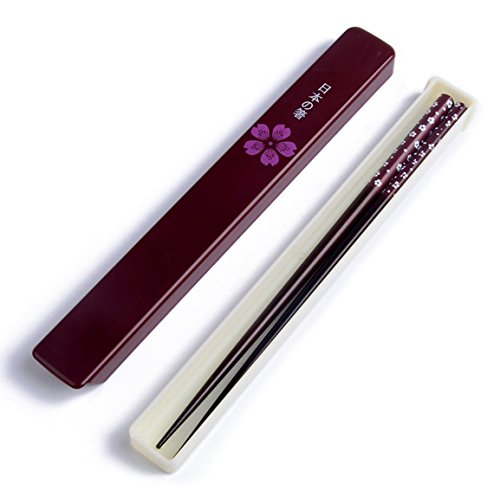Creative Japanese Style Natural Wood Chopsticks with Case Portable for Outdoor Travel (Red)
