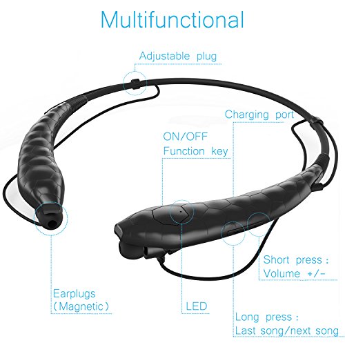 Headphones Wireless, Earfly Coolest BOA Design Bluetooth Earphone V4.0 Wireless Neckband Bluetooth Headse for Running Competitable with iPhone, Android, Other Bluetooth Enabled Devices. (black)