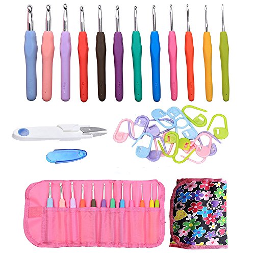 LFBEST 2mm-8mm 12 Sizes Crochet Hook Set With Ergonomic Handles For Extreme Comfort Aluminum Crochet Hook Set,Non-slip Handle With Free Portable Scissor,100pcs Locking Stitch (Mother's Day Gift)