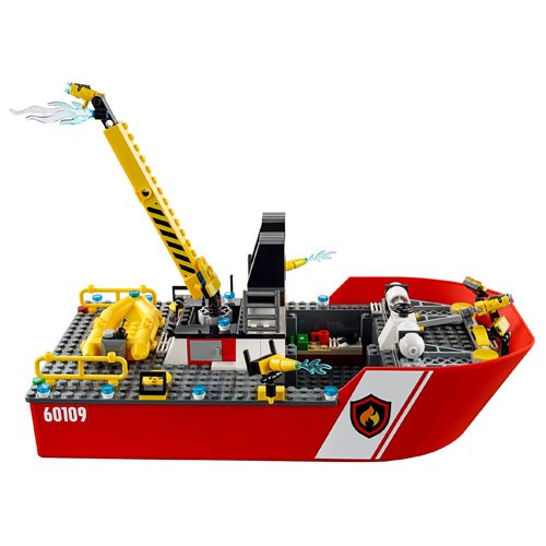 -. Feature : Enthält 5 Minifiguren: den Kapitän, 2 Feuerwehrmänner, eine Feuerwehrfrau sowie den Leuchtturmwärter. / Enthält ein Feuerwehrschiff und einen Leuchtturm. / Das Feuerwehrschiff verfügt über eine authentische Brücke, Suchscheinwerfer, eine Kombüse, eine Krankenstation sowie eine spezielle Shooter-Wasserkanone an einem beweglichen Kranarm. / Zum Leuchtturm gehören auch ein kleiner Anleger sowie ein Schuppen. / Bring das Feuerwehrschiff in Position, um den brennenden Leuchtturm zu löschen.